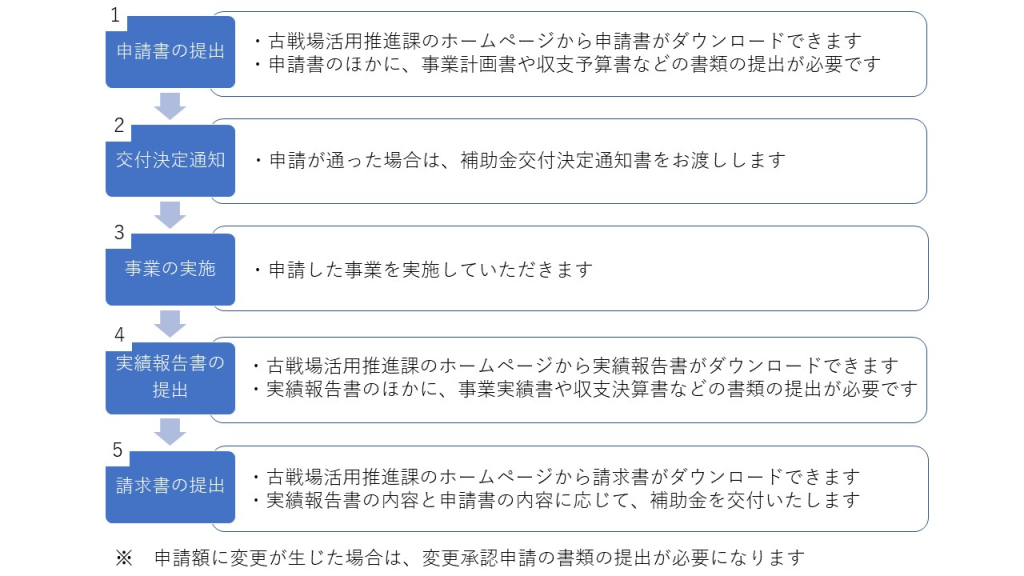 関ケ原の特産品(お土産等)やご当地メニューの開発、観光イベントの開催など関ケ原の観光活性化につながるような事業に対して経費を一部補助させて頂きます。補助制度を積極的にご利用頂き、関ケ原の観光を一緒に盛り上げましょう!(これまでの「大地の物語」推進事業補助金を改変・拡充します。)